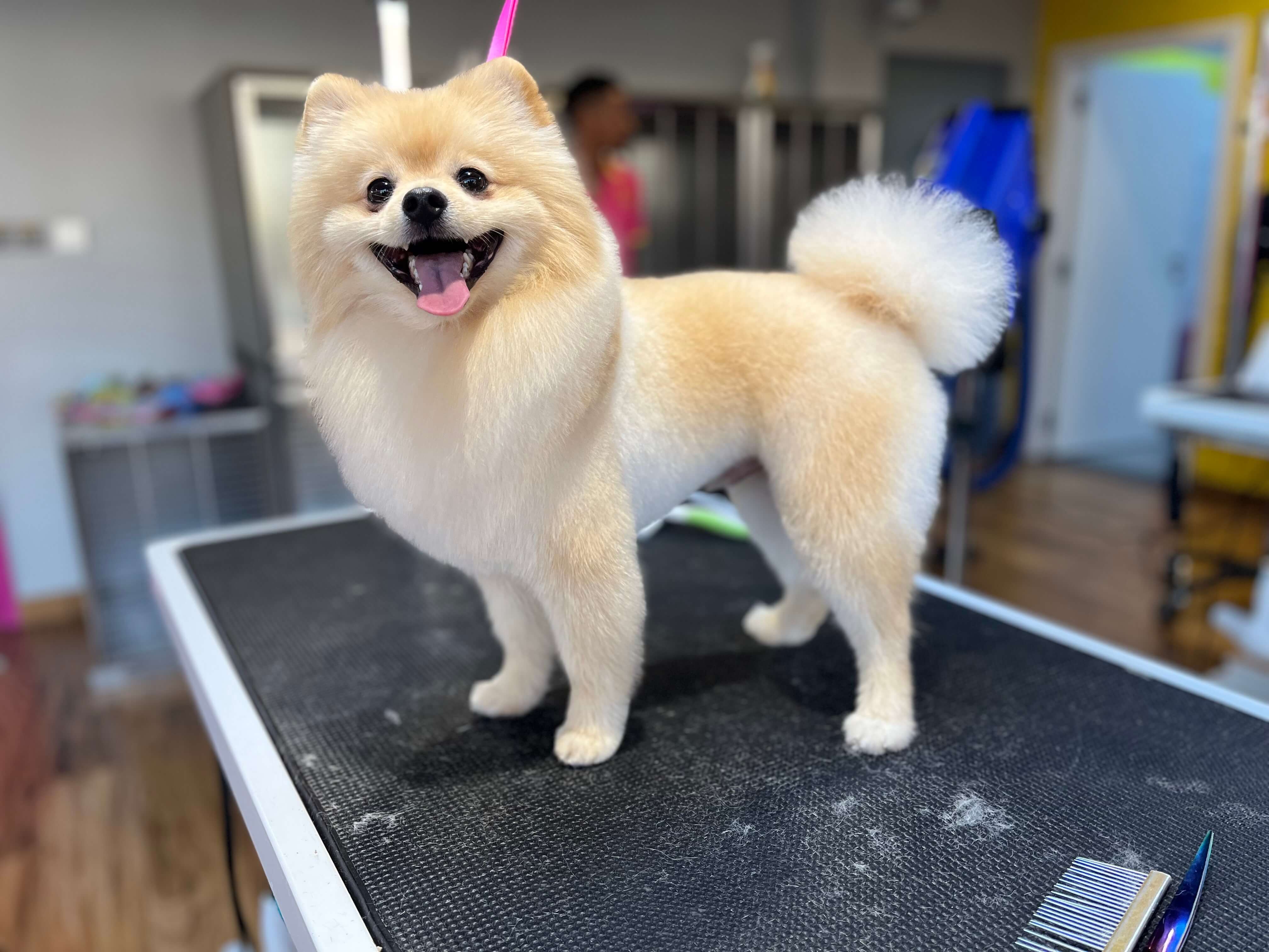 At Shampooch, we believe every pup deserves a little pampering! Our custom-built, state-of-the-art salon is designed to make dogs of all sizes and ages look and feel their best. From snazzy nail trims to some pawsome hand-scissored grooms, we offer top-notch care using only the finest all-natural shampoos and conditioners. Our expert groomers chat with pet parents to find the perfect haircut for each dog’s needs and lifestyle. Choose between our Basic or Full Grooming Package. Just bring along up-to-date vaccination records, and we’ll take care of the rest.
